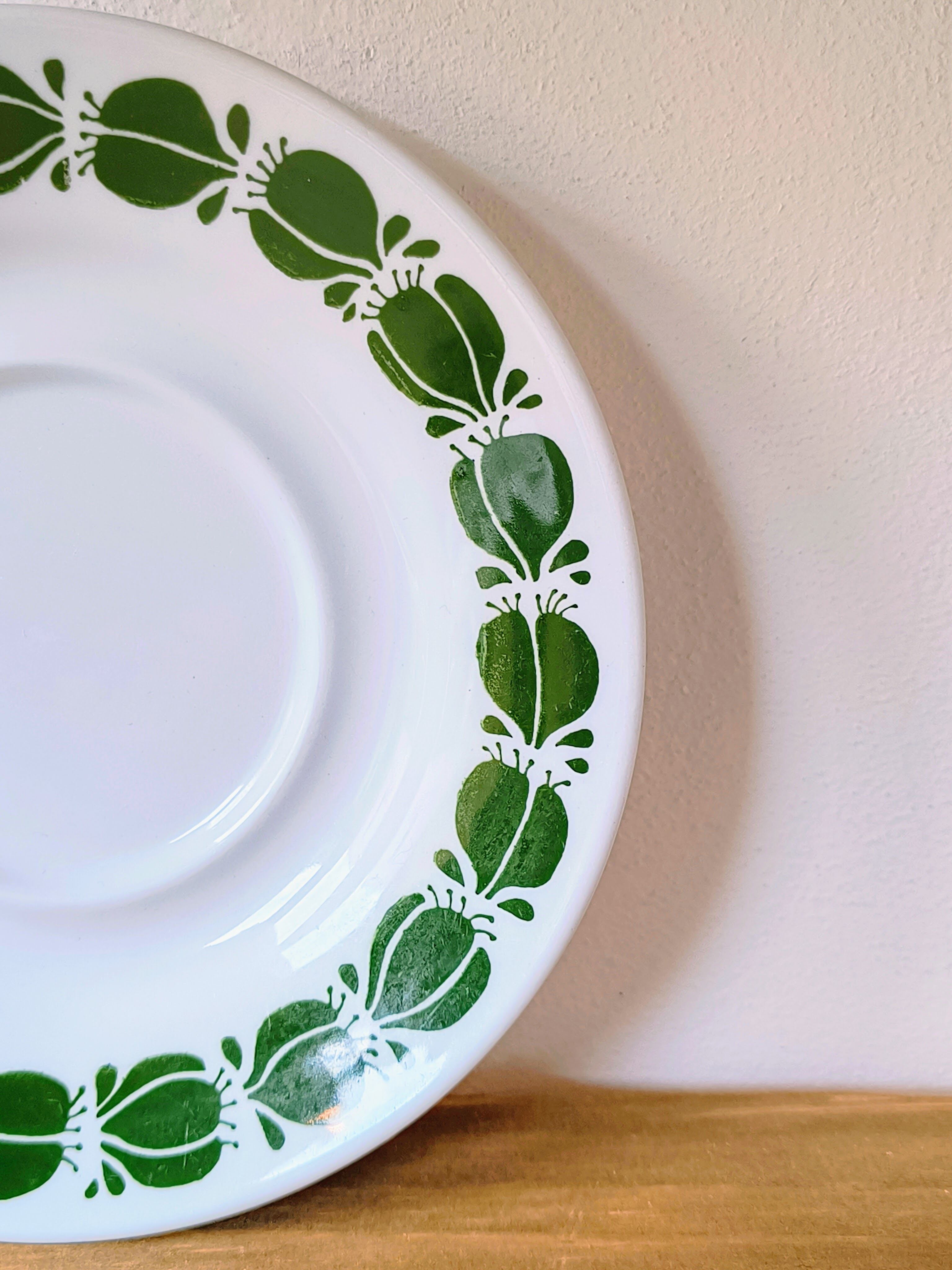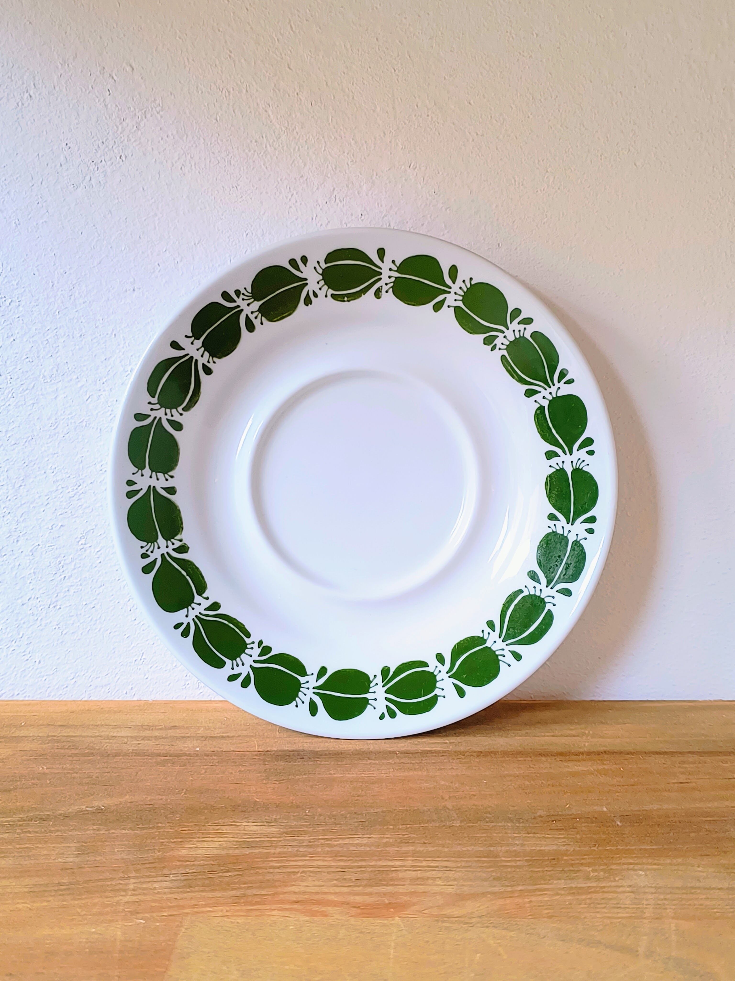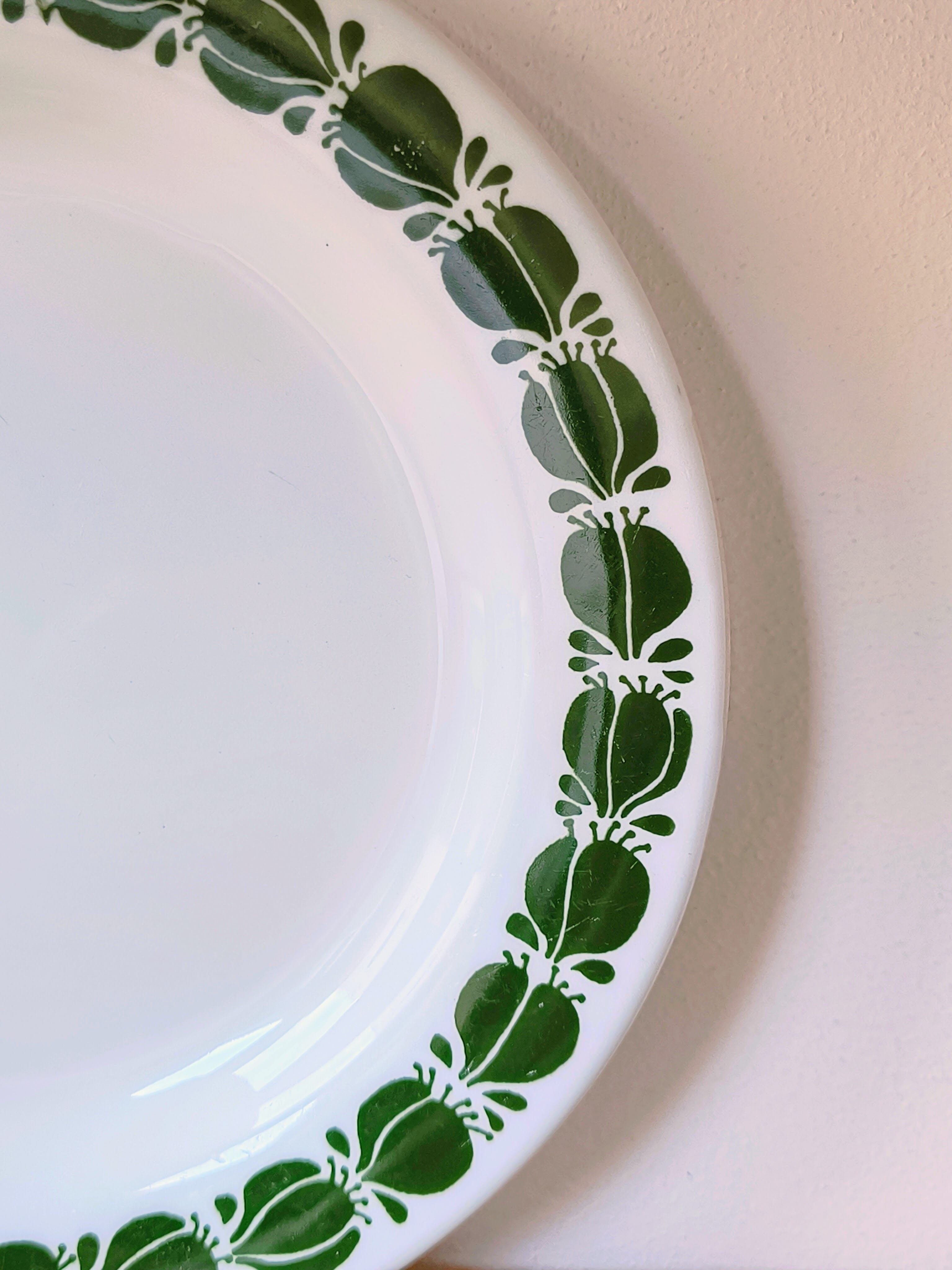白をベースに、ポピーのような丸い緑の花のパターンが印象的なKORULENシリーズ。