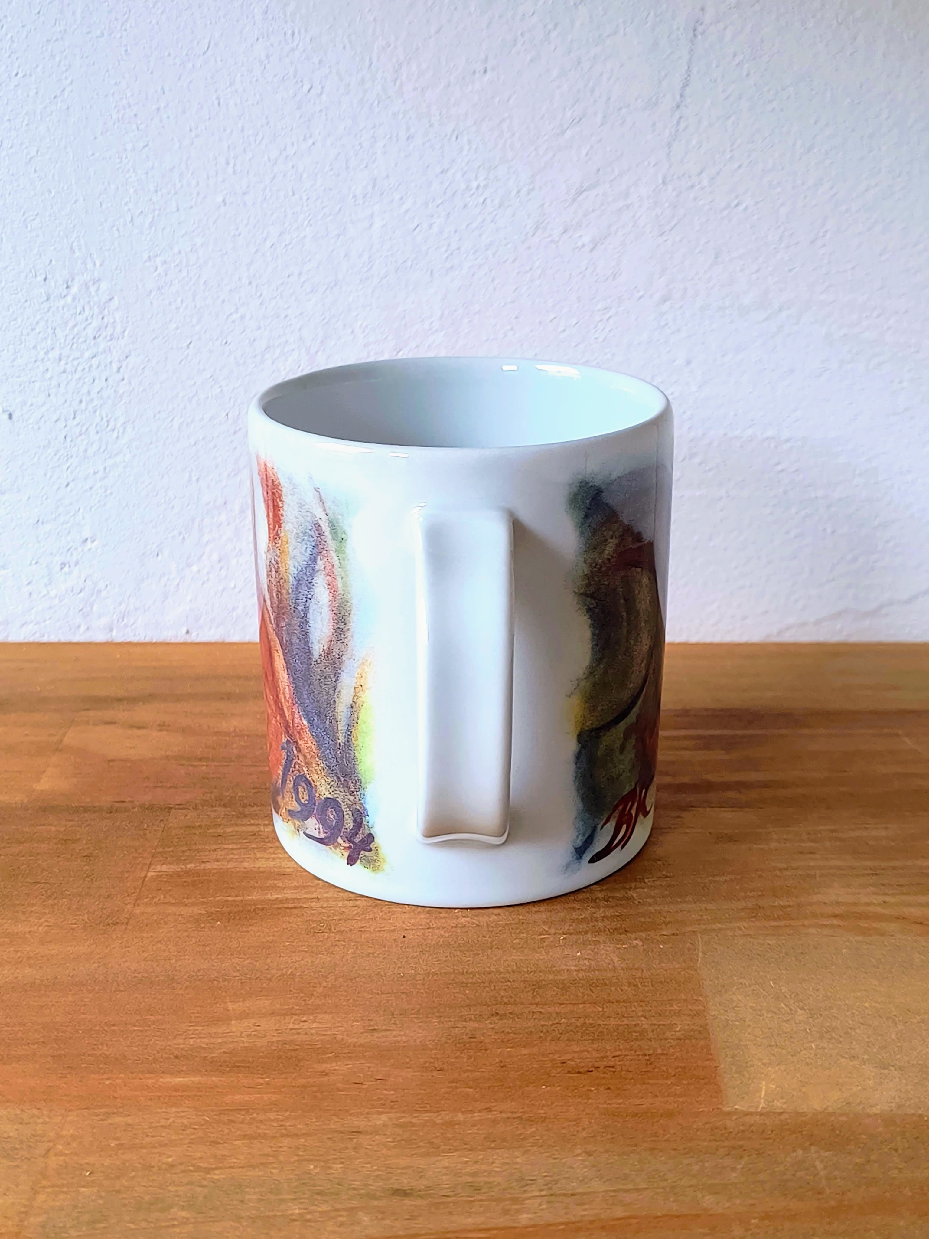 1994年のデザインは、これまでのモダンアート的な表現から趣を変え、まるでキャンバスに描かれた油絵や水彩画のような、繊細で幻想的なタッチが特徴です。マグ全体に広がる豊かな色彩が、奥行きのある美しい風景を作り出しています。