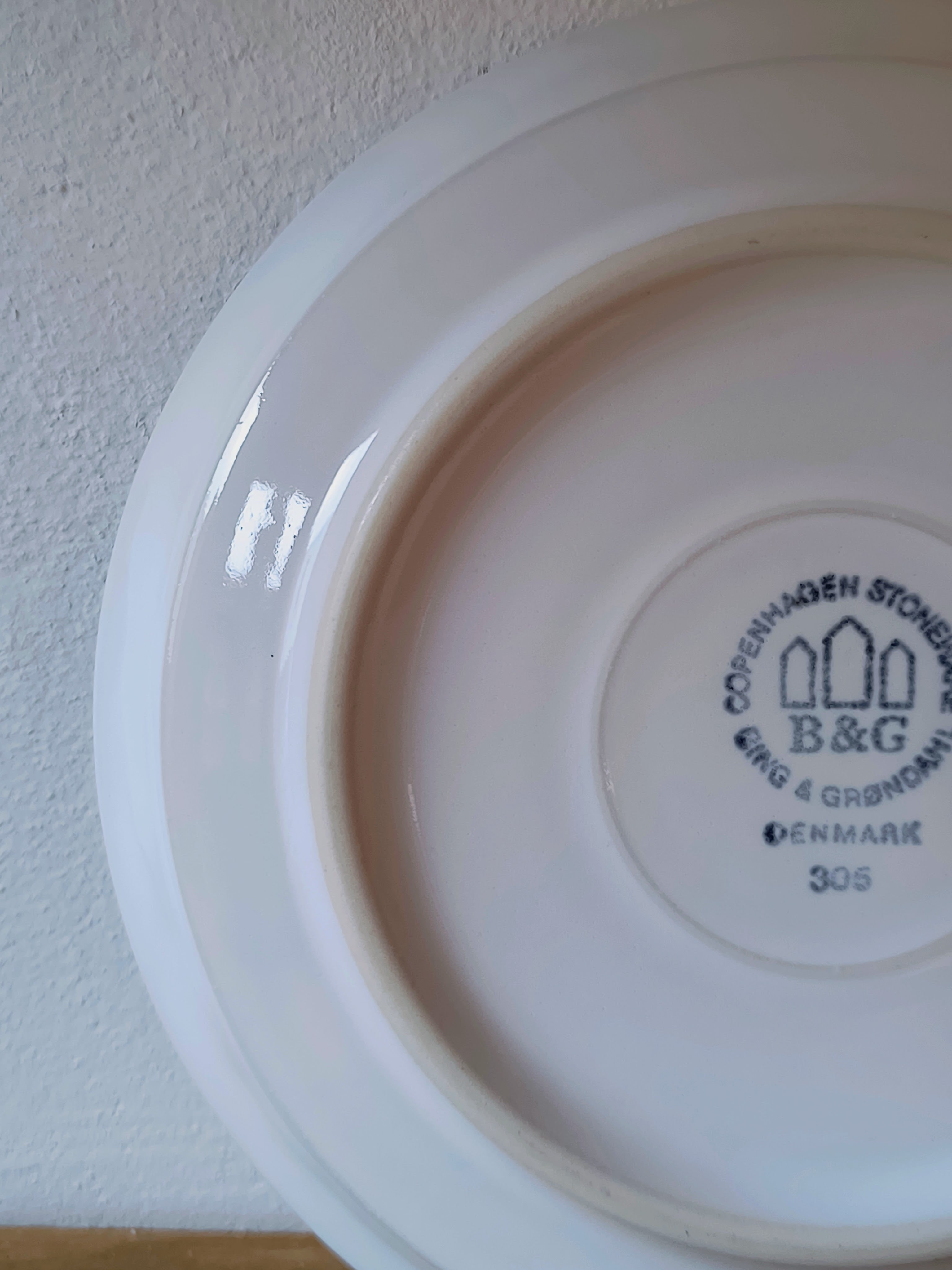 製造は、Kronjyden(クロニーデン)からNissen(ニッセン)、そしてBing & Grøndahl(ビング・オー・グレンダール)へと窯が引き継がれながら、長きにわたり愛されてきたクイストゴーの代表作の一つです。