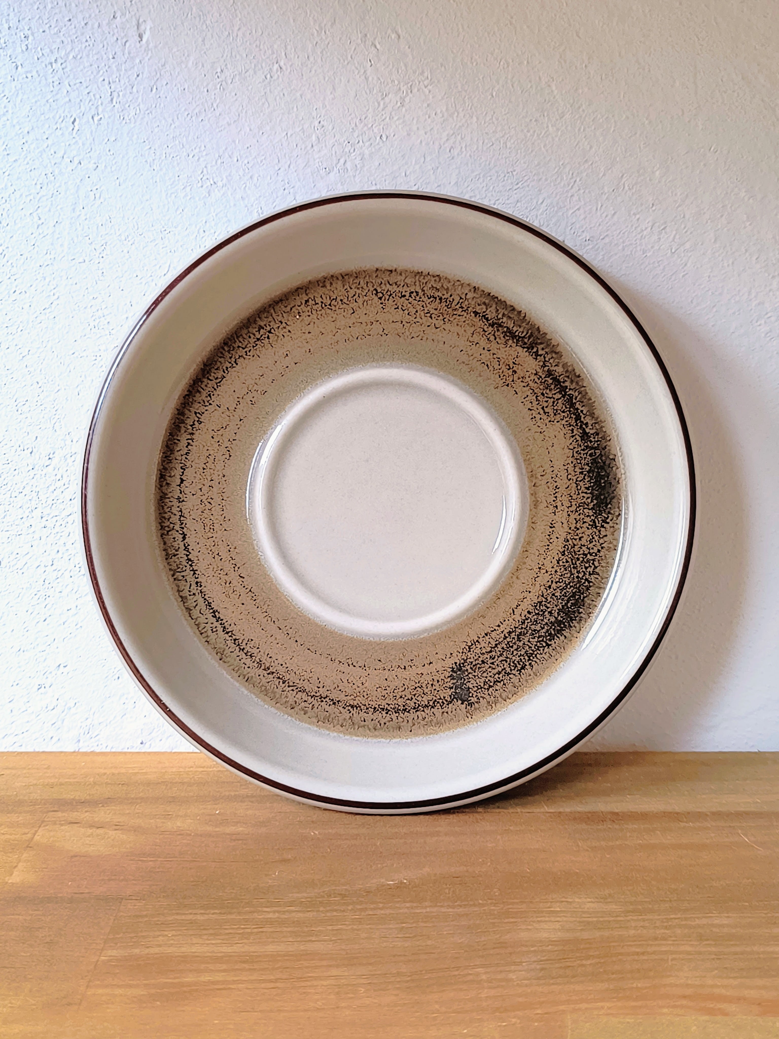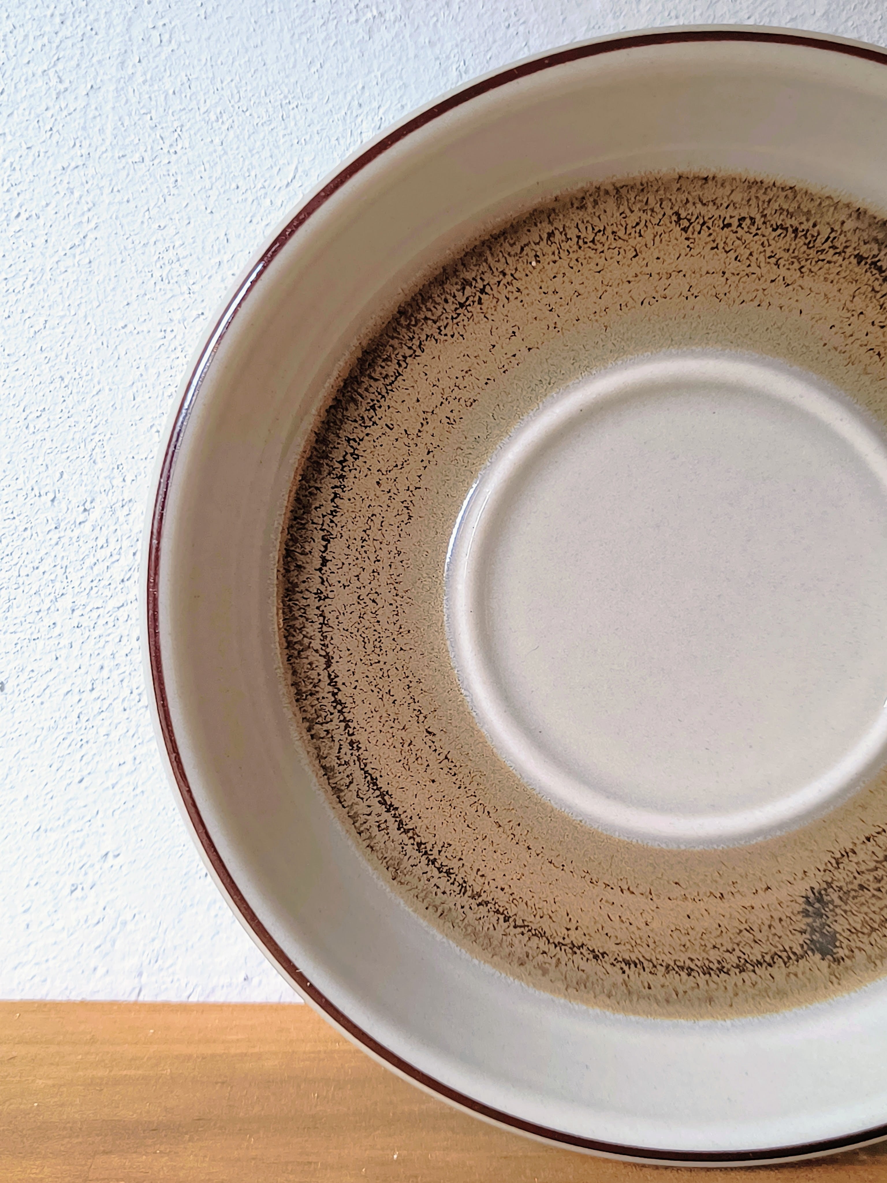 ライトベージュに濃いブラウンのラインが施されたデザインは、シンプルでありながらも洗練されています。釉薬の発色に個体差があり、まるで1点ものの作品のような表情を楽しめます。