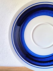 大胆で若々しい感性が光るこのシリーズは、白地の磁器にコバルトブルーの丸いモチーフがフリーハンドで描かれているのが特徴です。