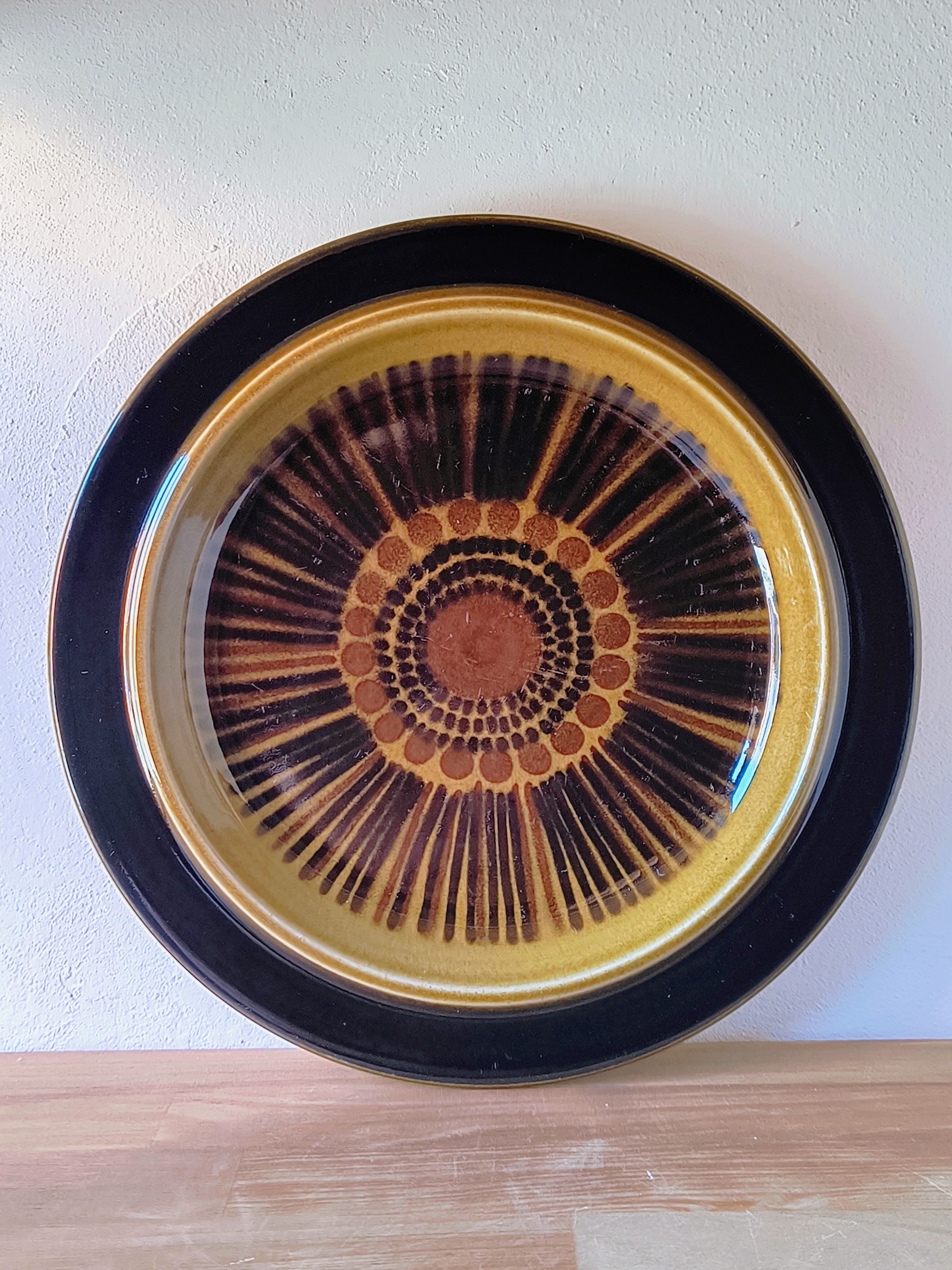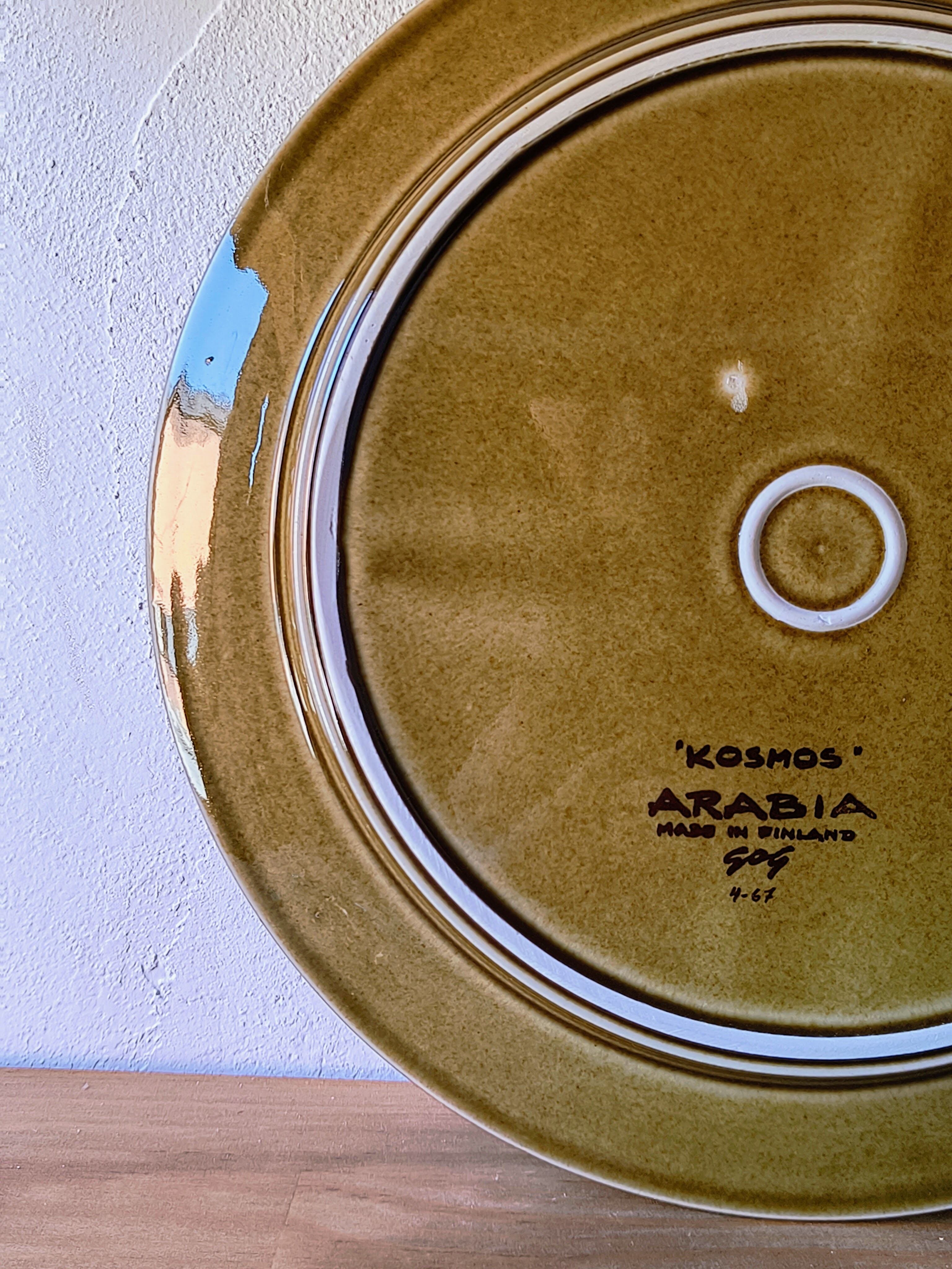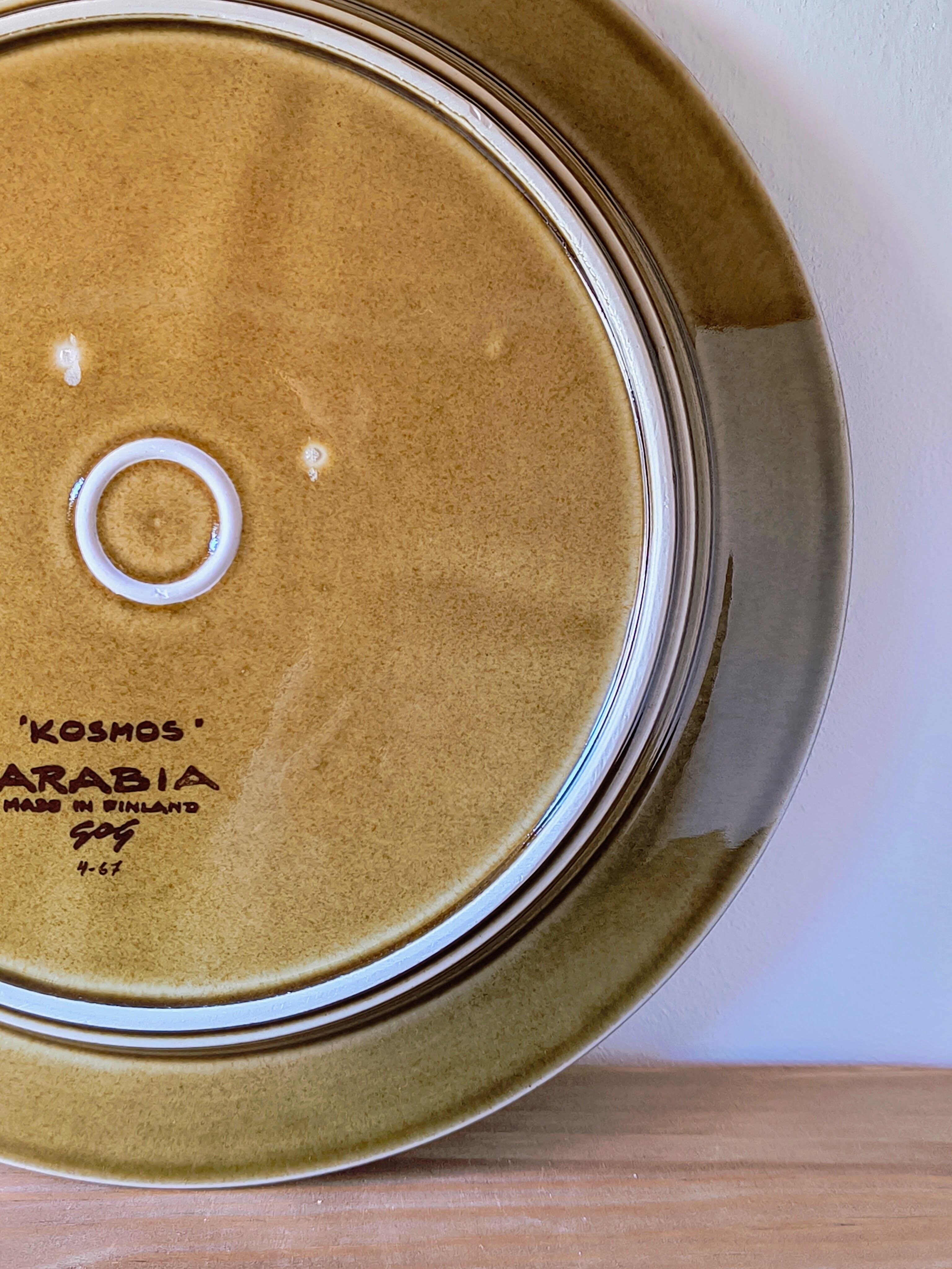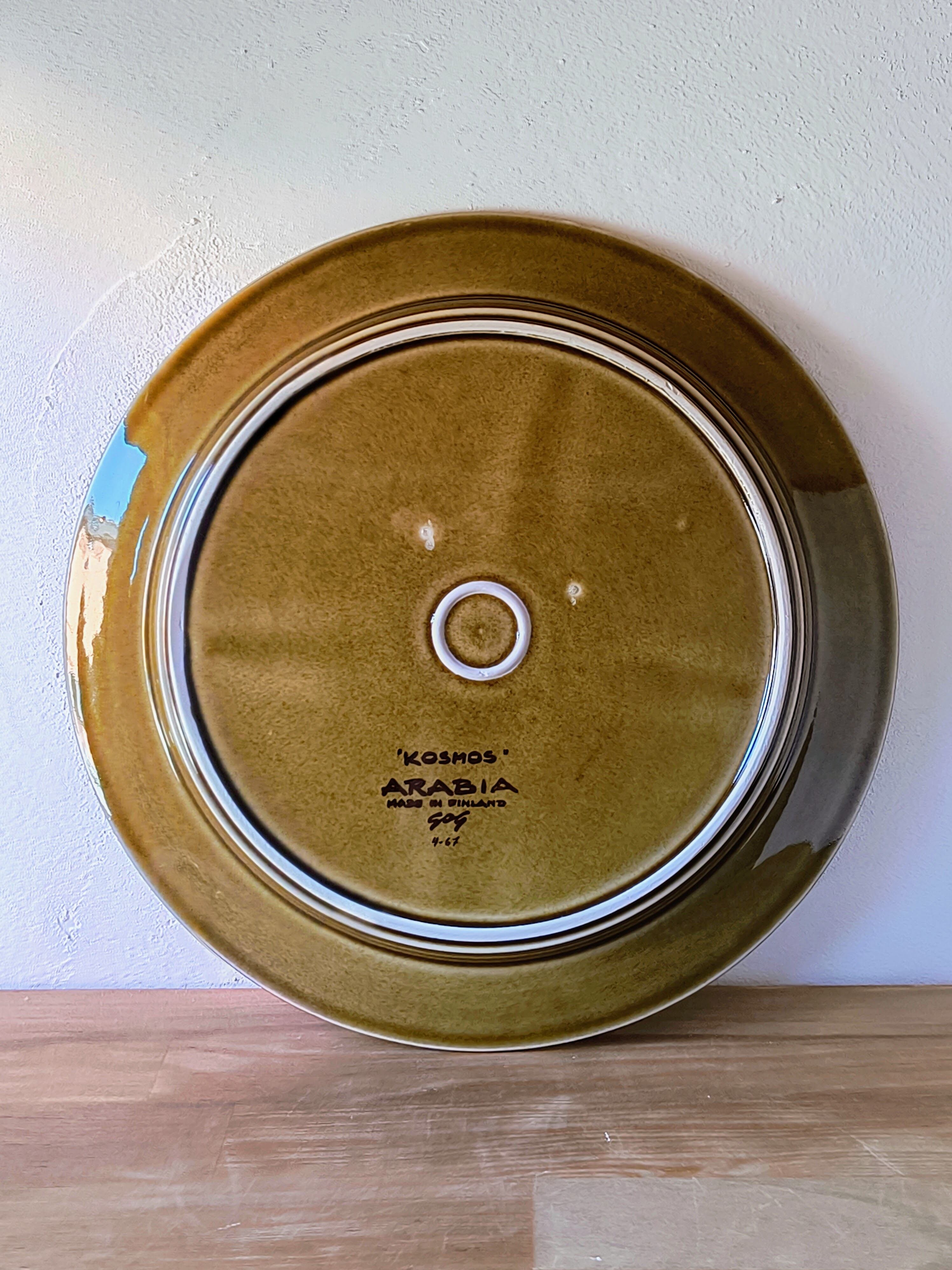 フィンランドのアラビア(ARABIA)社において、ウラ・プロコッペ(Ulla Procopé)がフォルムを設計し、グンヴァル・リンリン(Gunvor Olin-Grönqvist)が装飾を手がけた「Kosmos(コスモス)」シリーズの直径25.5cmプレートです。