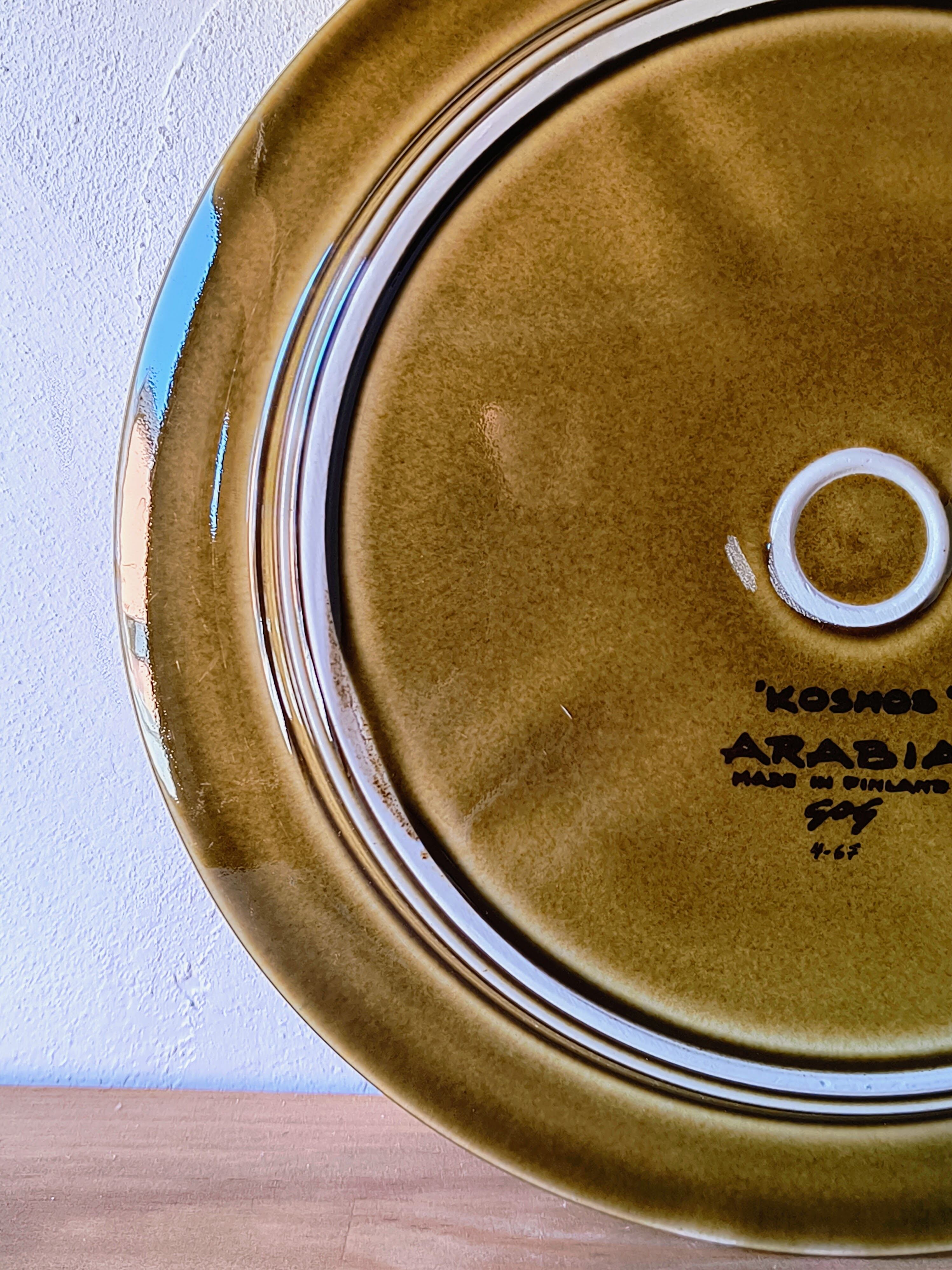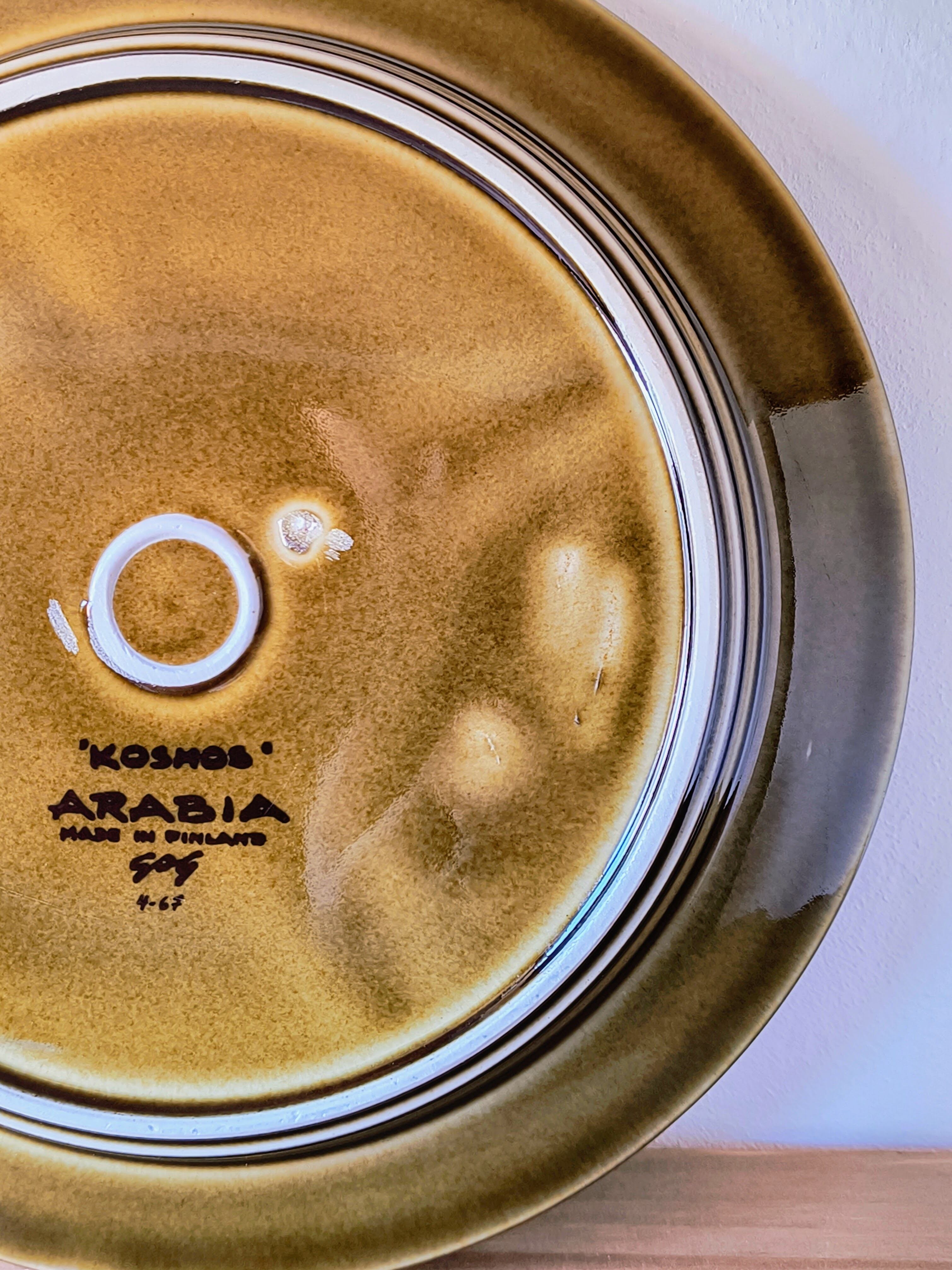 フィンランドのアラビア(ARABIA)社において、ウラ・プロコッペ(Ulla Procopé)がフォルムを設計し、グンヴァル・リンリン(Gunvor Olin-Grönqvist)が装飾を手がけた「Kosmos(コスモス)」シリーズの直径25.5cmプレートです。