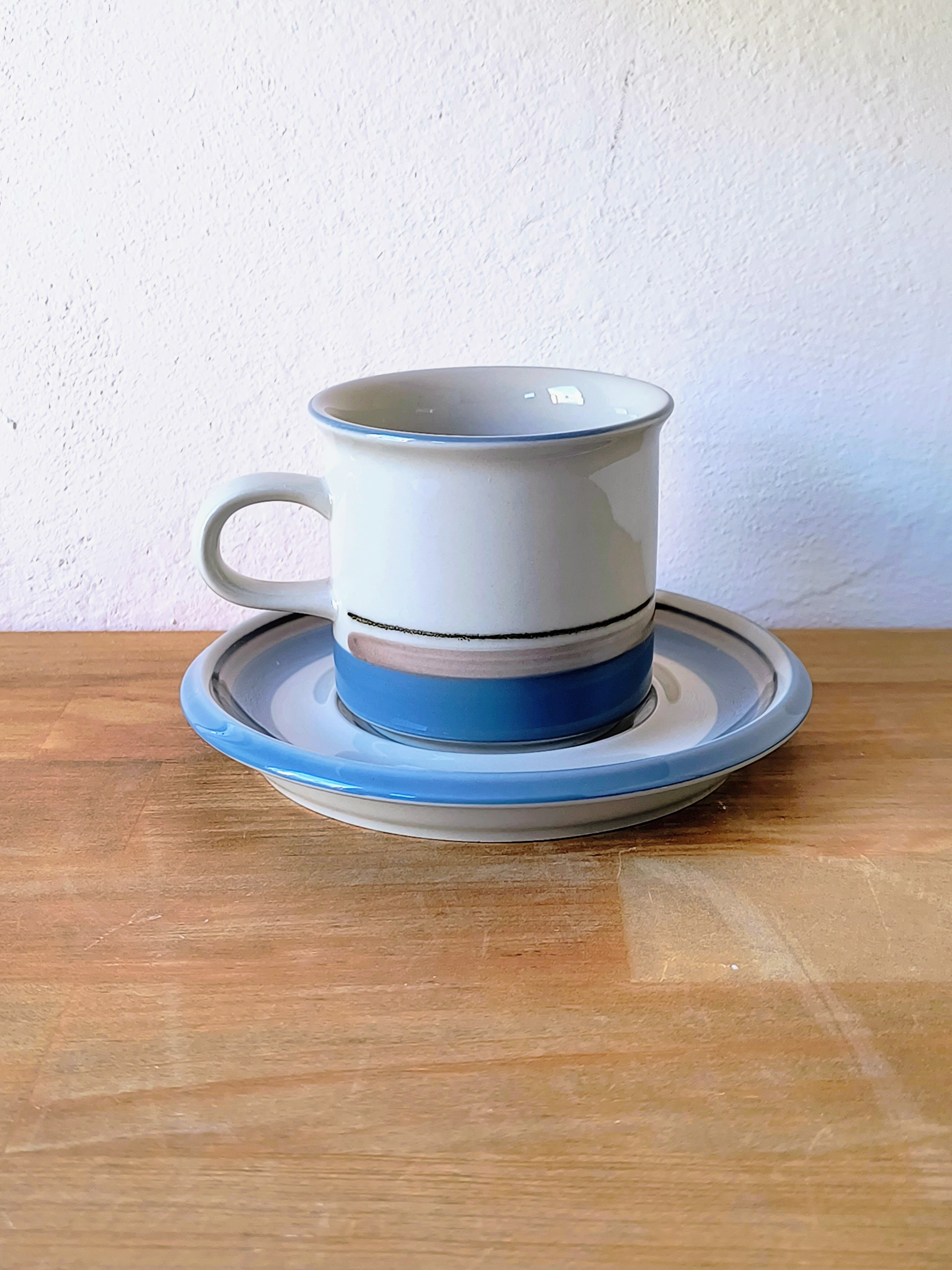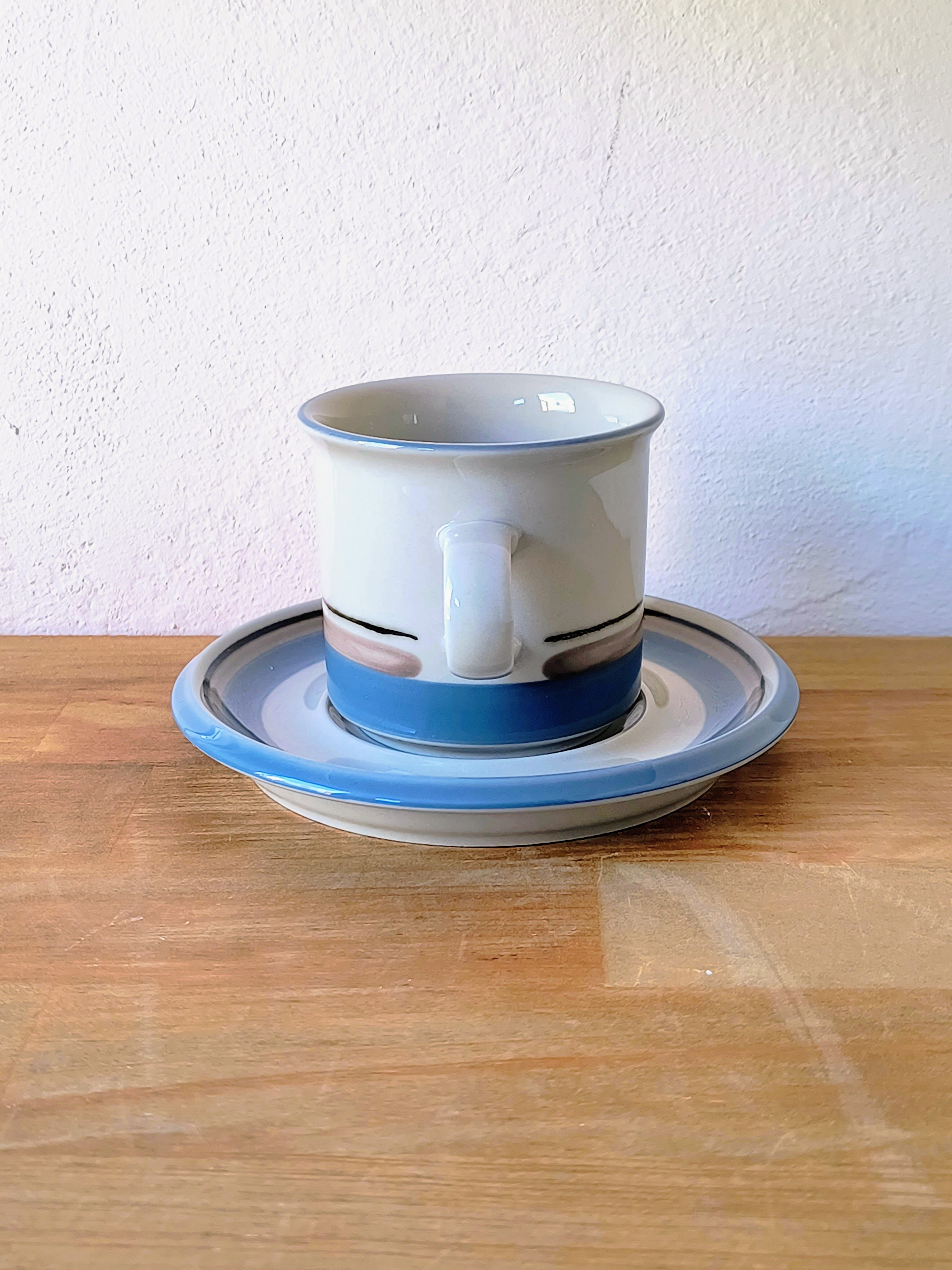 フィンランドのアラビア(ARABIA)社にて、ウラ・プロコッペ(Ulla Procopé)がフォルムを設計し、インケリ・レイヴォ(Inkeri Leivo)がデコレーションを手がけた「Uhtua(ウートゥア)」シリーズのコーヒーカップ&ソーサーです。