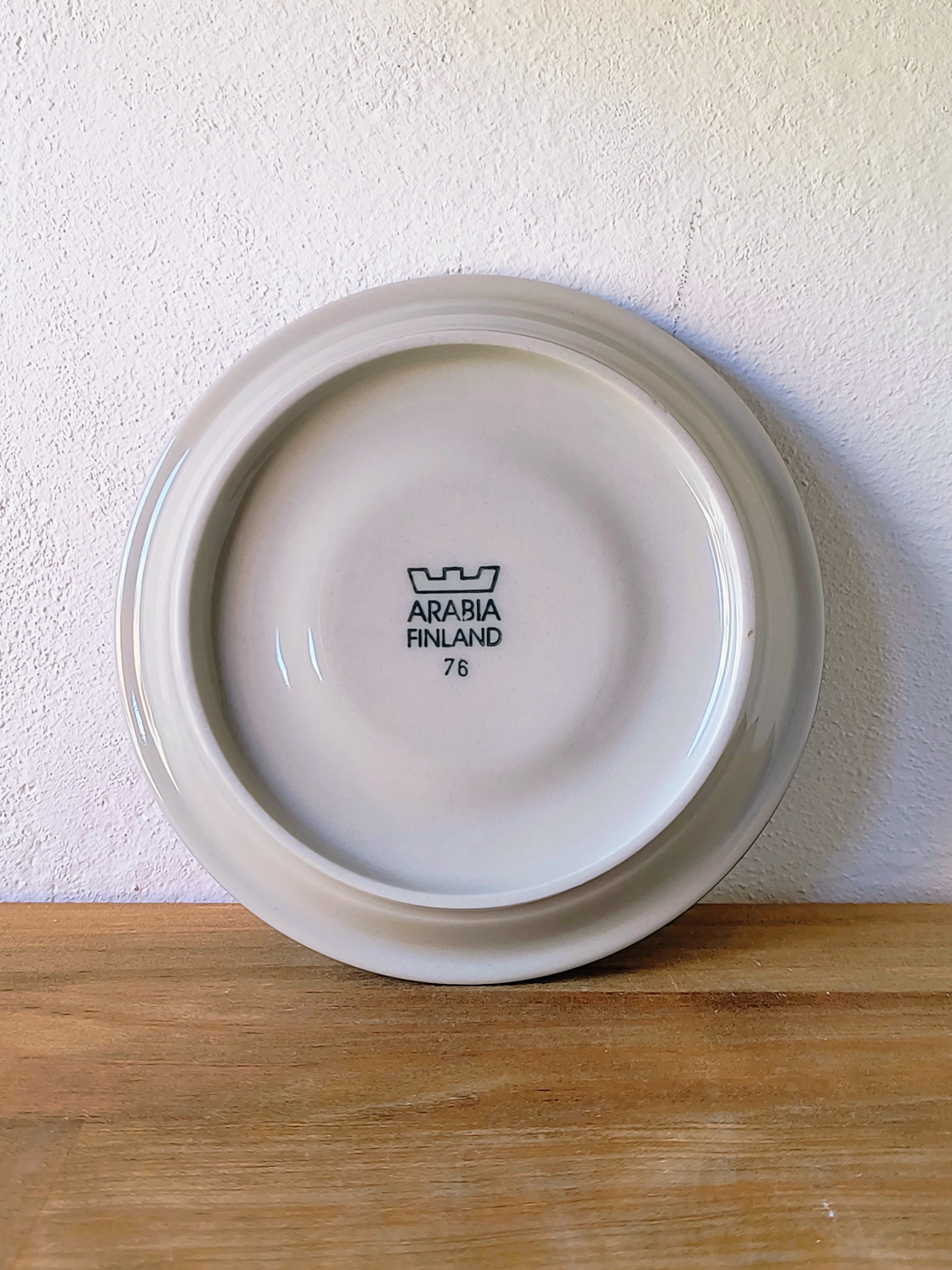 派手さを抑えつつも、色の重なりによって独特の奥行きを感じさせるカラーリングは、1980年代のアラビア社が提案したモダンでタイムレスなデザインの代表作です。