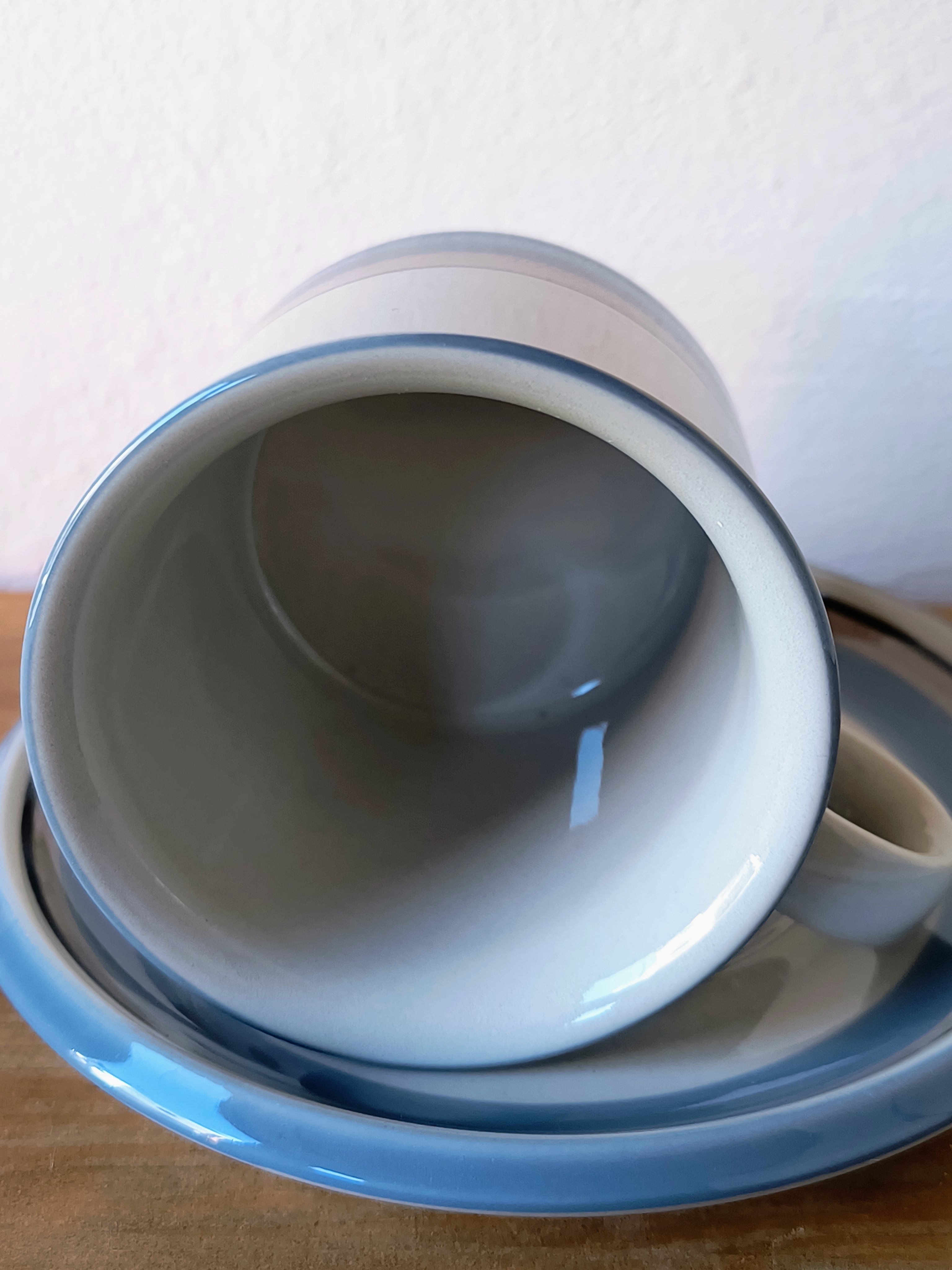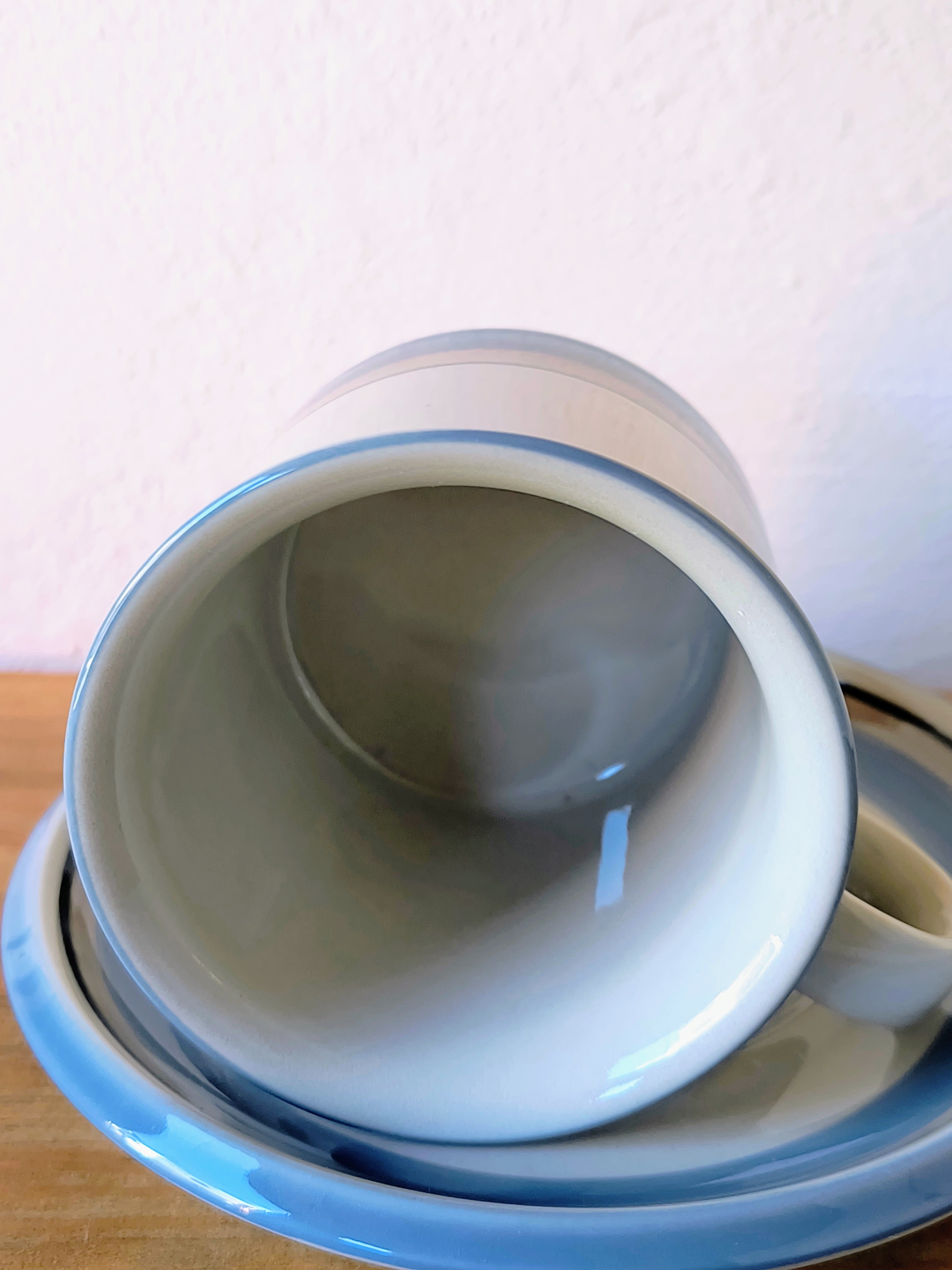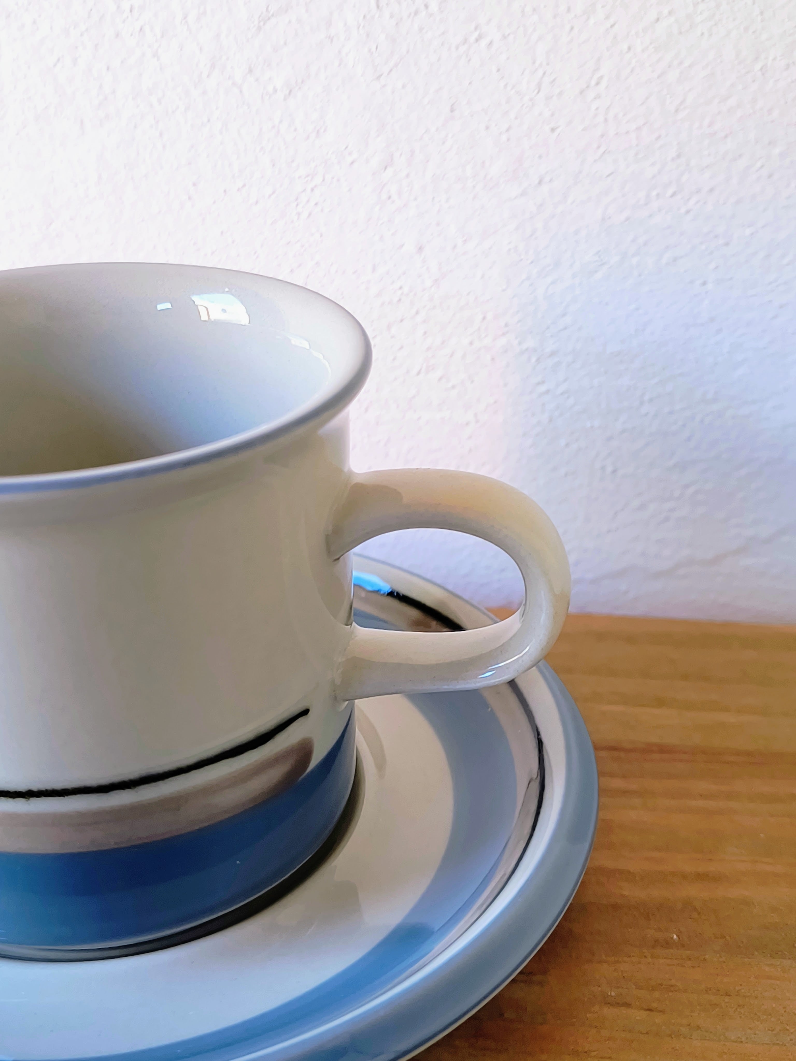 造形面では、アラビア社のヴィンテージを代表する非常に堅牢なフォルムが採用されています。日々の生活の中で長く使い続けることを前提とした設計になっており、適度な厚みが生み出す安定感や、指に馴染む丸みを帯びた持ち手の形状など、細部にまで機能美が追求されています。