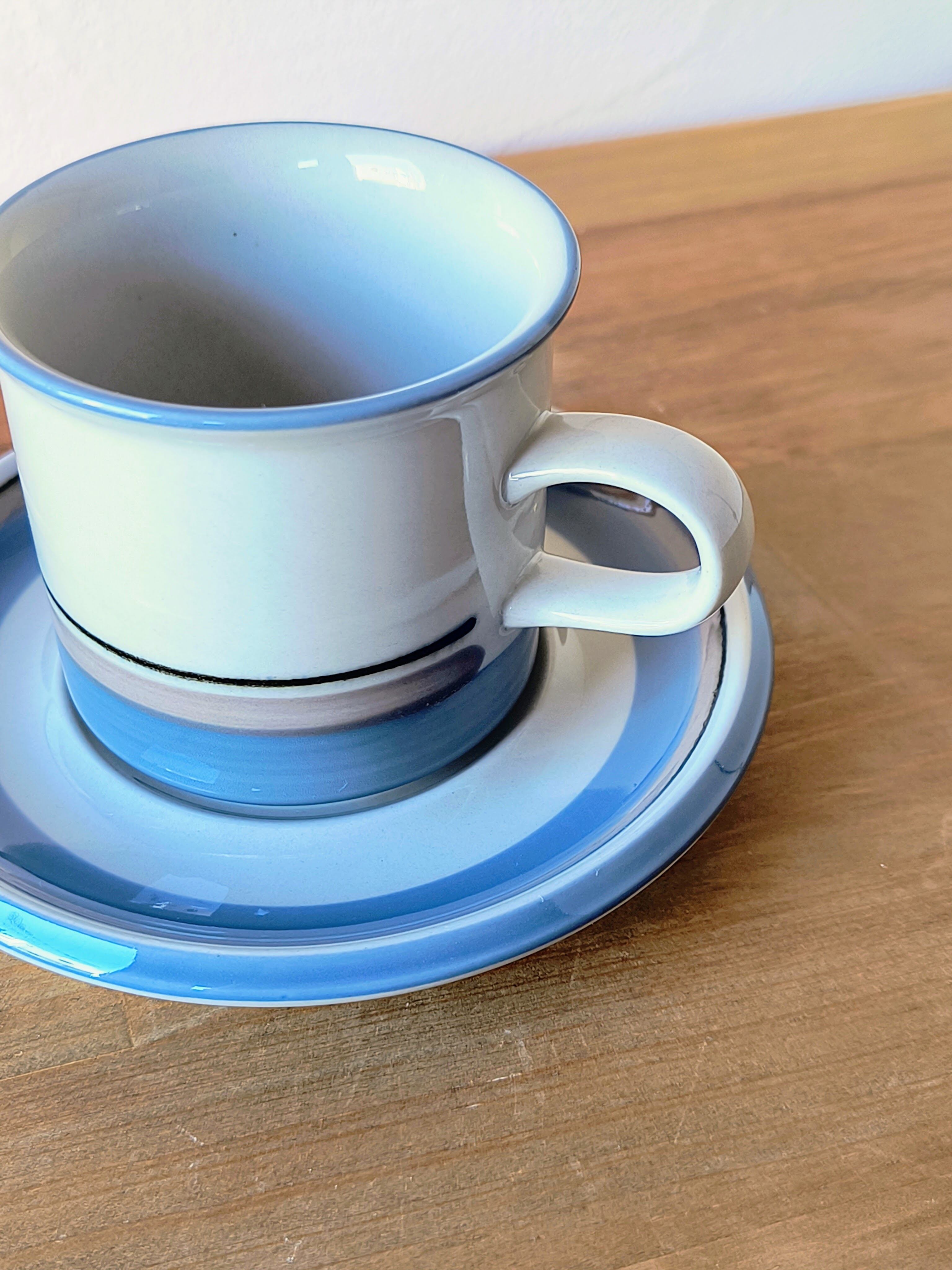 フィンランドのアラビア(ARABIA)社にて、ウラ・プロコッペ(Ulla Procopé)がフォルムを設計し、インケリ・レイヴォ(Inkeri Leivo)がデコレーションを手がけた「Uhtua(ウートゥア)」シリーズのコーヒーカップ&ソーサーです。