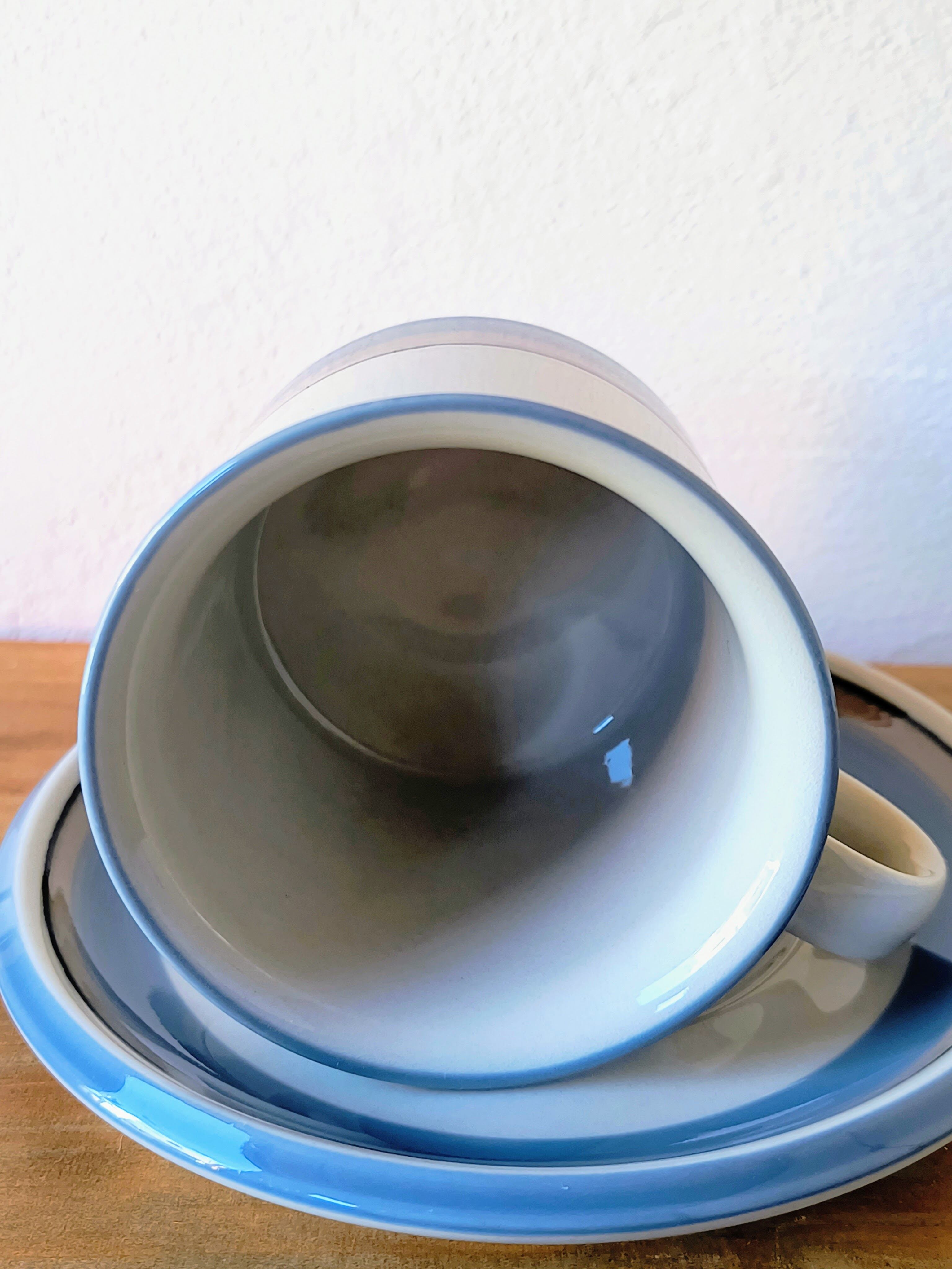 造形面では、アラビア社のヴィンテージを代表する非常に堅牢なフォルムが採用されています。日々の生活の中で長く使い続けることを前提とした設計になっており、適度な厚みが生み出す安定感や、指に馴染む丸みを帯びた持ち手の形状など、細部にまで機能美が追求されています。