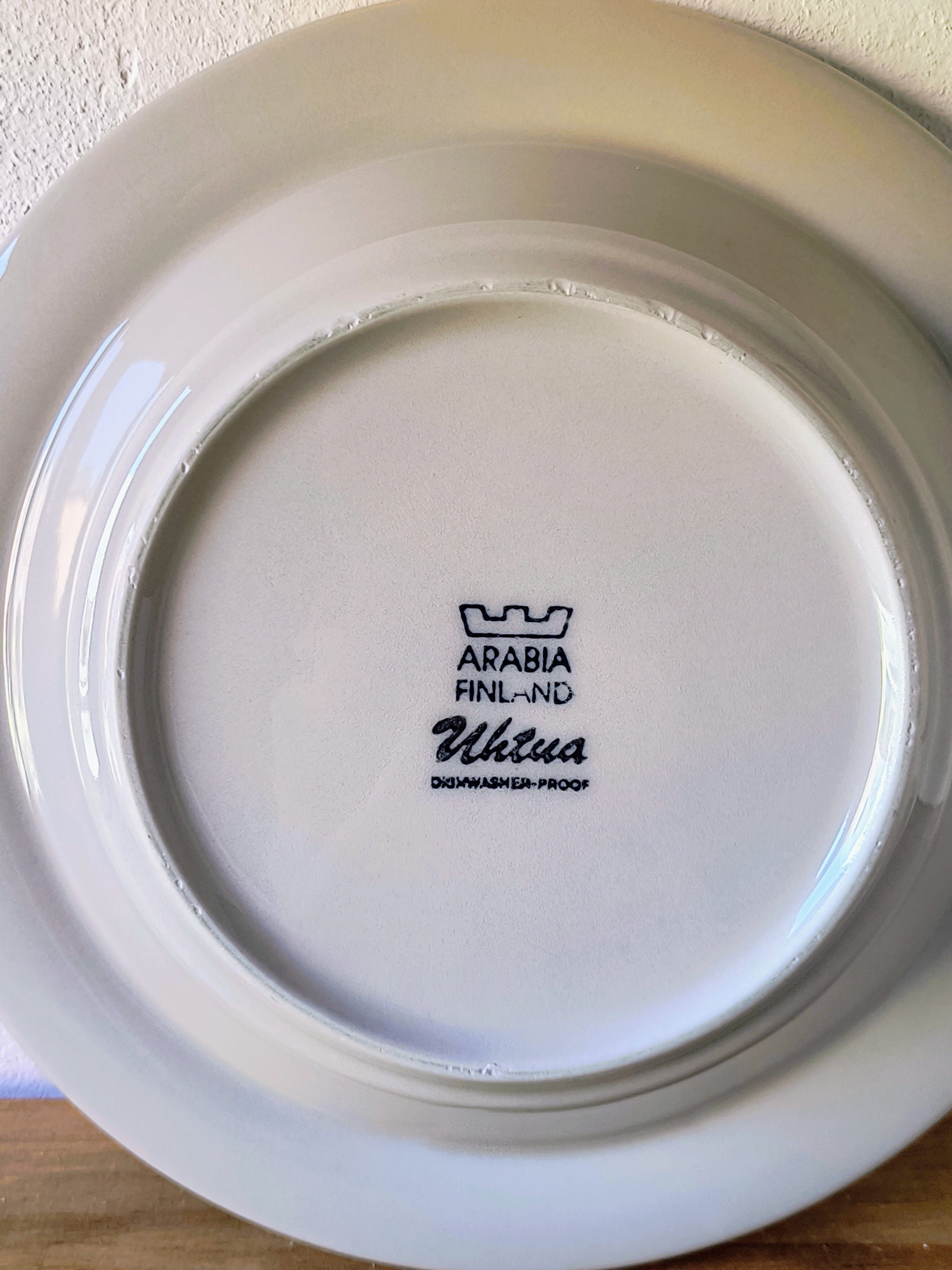 フィンランドのアラビア(ARABIA)社にて、ウラ・プロコッペ(Ulla Procopé)がフォルムを設計し、インケリ・レイヴォ(Inkeri Leivo)がデコレーションを手がけた「Uhtua(ウートゥア)」シリーズのスープボウルです。
