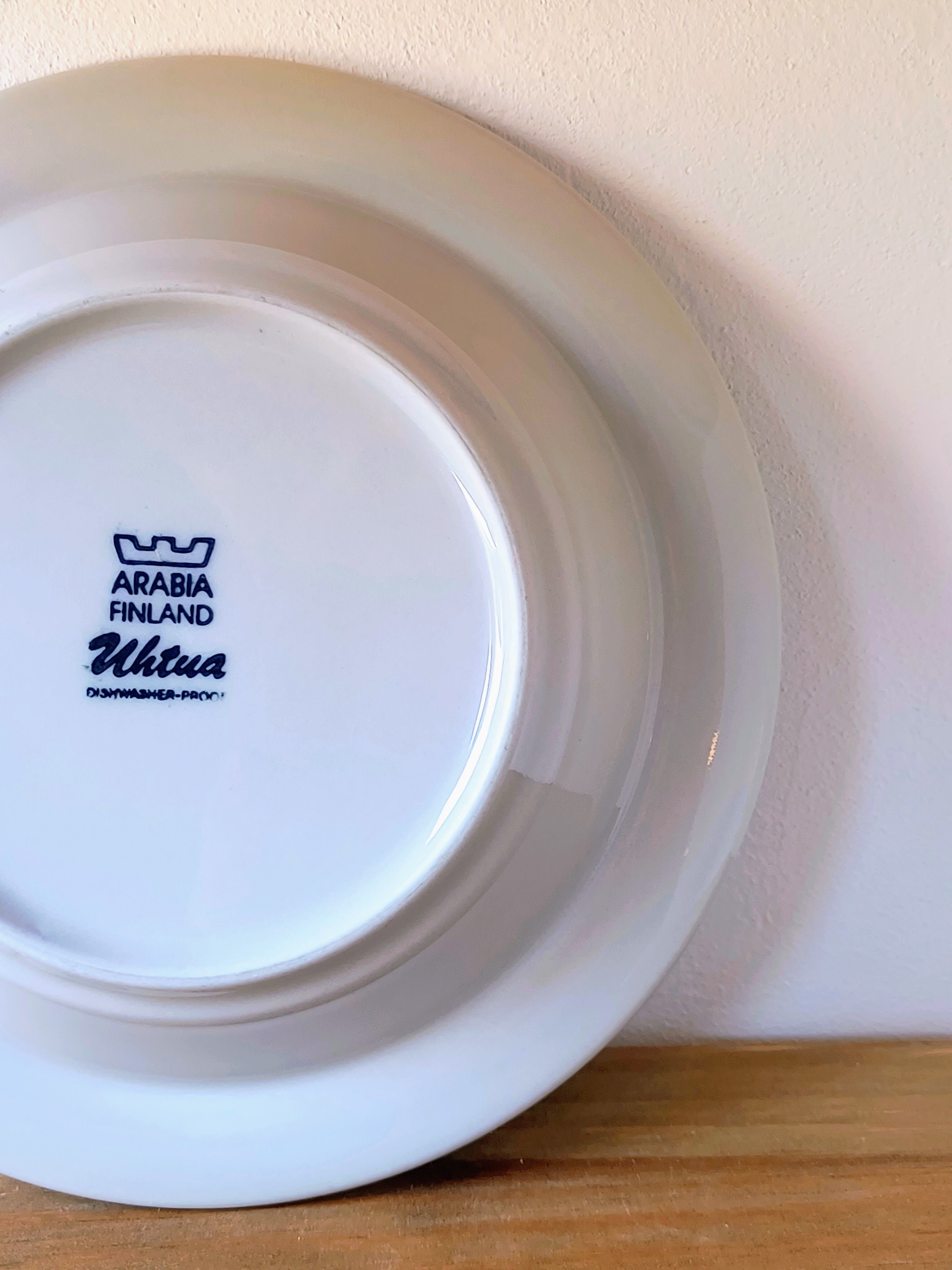 フィンランドのアラビア(ARABIA)社にて、ウラ・プロコッペ(Ulla Procopé)がフォルムを設計し、インケリ・レイヴォ(Inkeri Leivo)がデコレーションを手がけた「Uhtua(ウートゥア)」シリーズのスープボウルです。