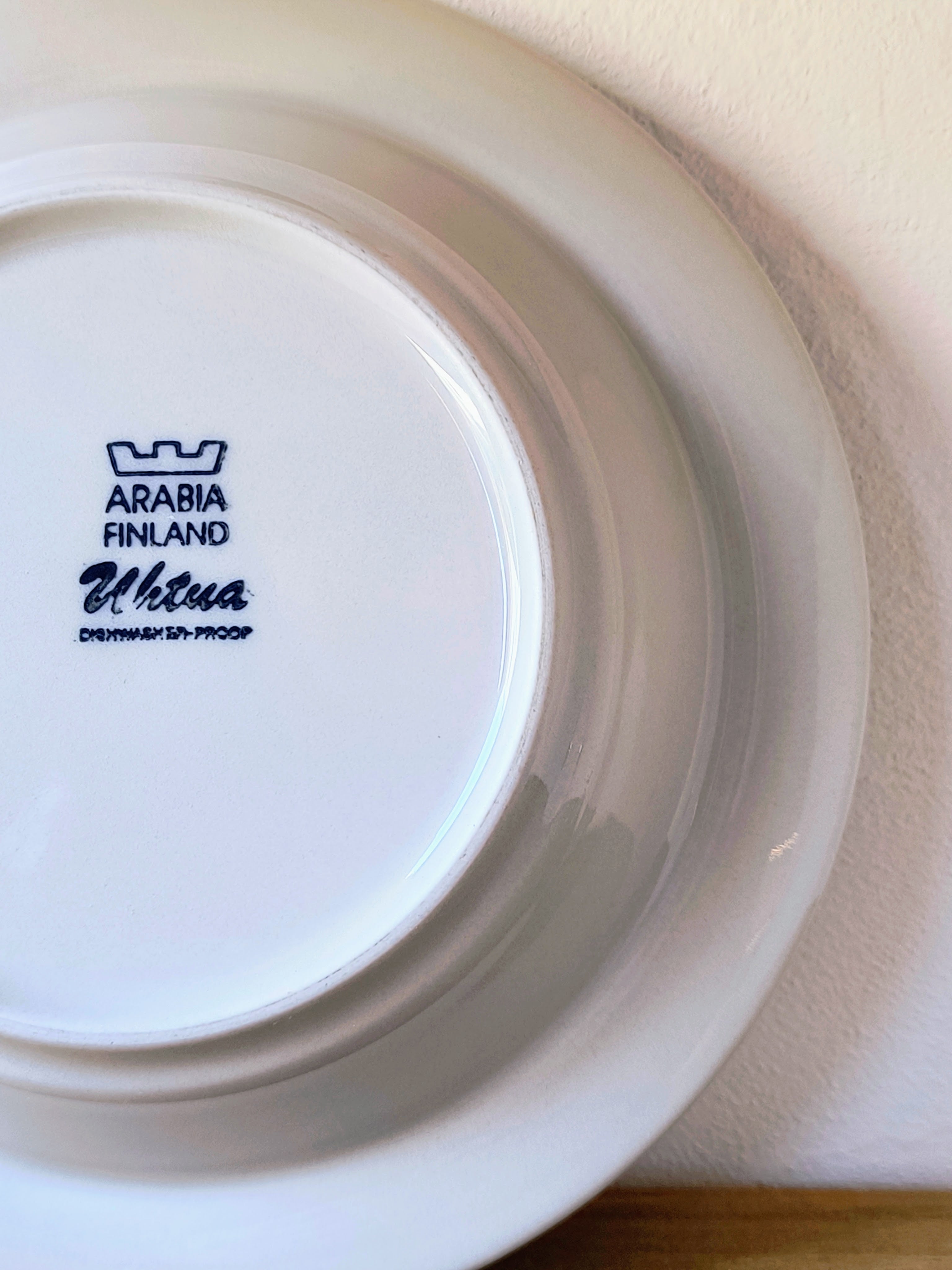 フィンランドのアラビア(ARABIA)社にて、ウラ・プロコッペ(Ulla Procopé)がフォルムを設計し、インケリ・レイヴォ(Inkeri Leivo)がデコレーションを手がけた「Uhtua(ウートゥア)」シリーズのスープボウルです。