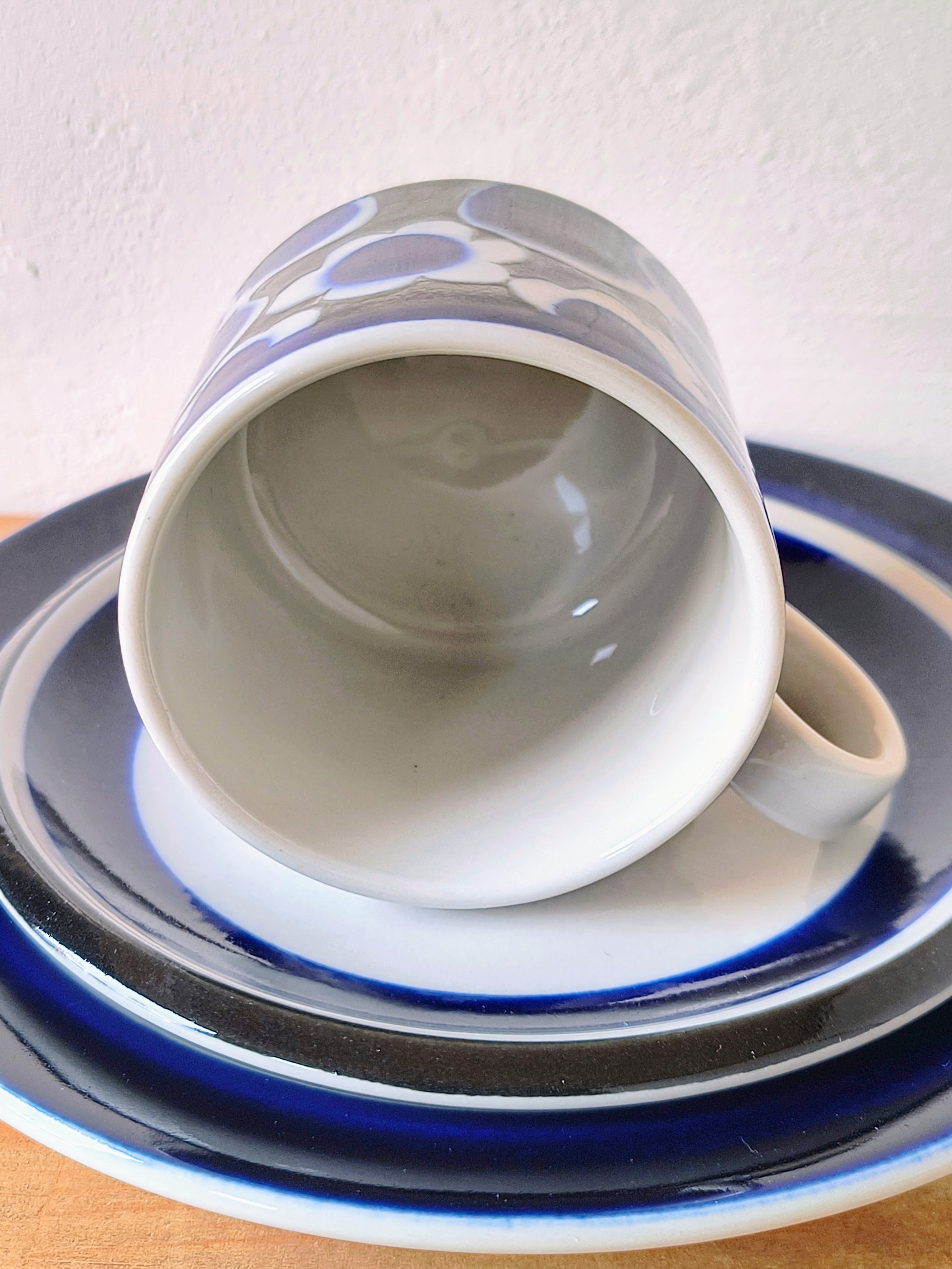 コーヒーカップは、当時のフィンランドのライフスタイルを反映した、すっきりとした立ち上がりのあるシルエットが特徴です。