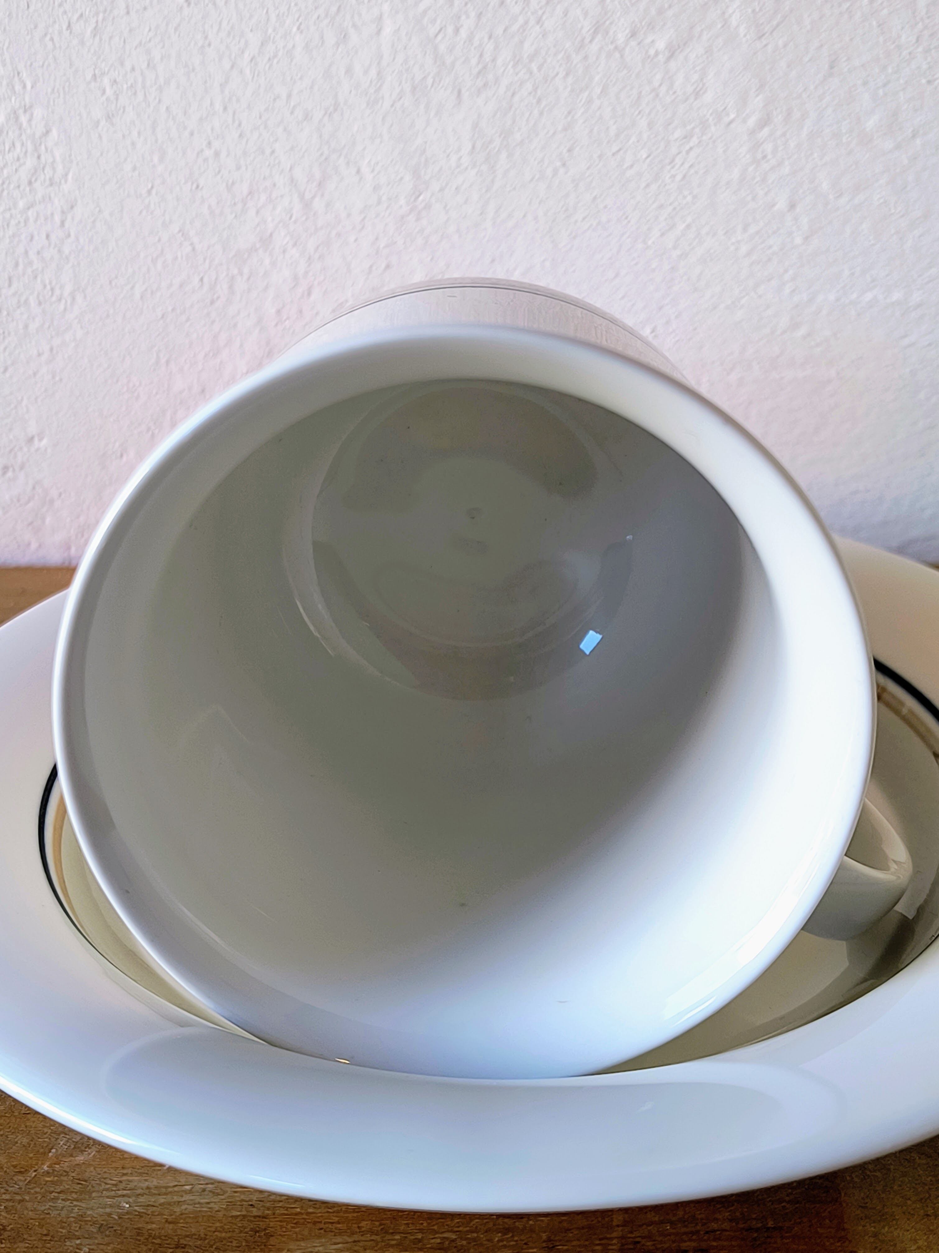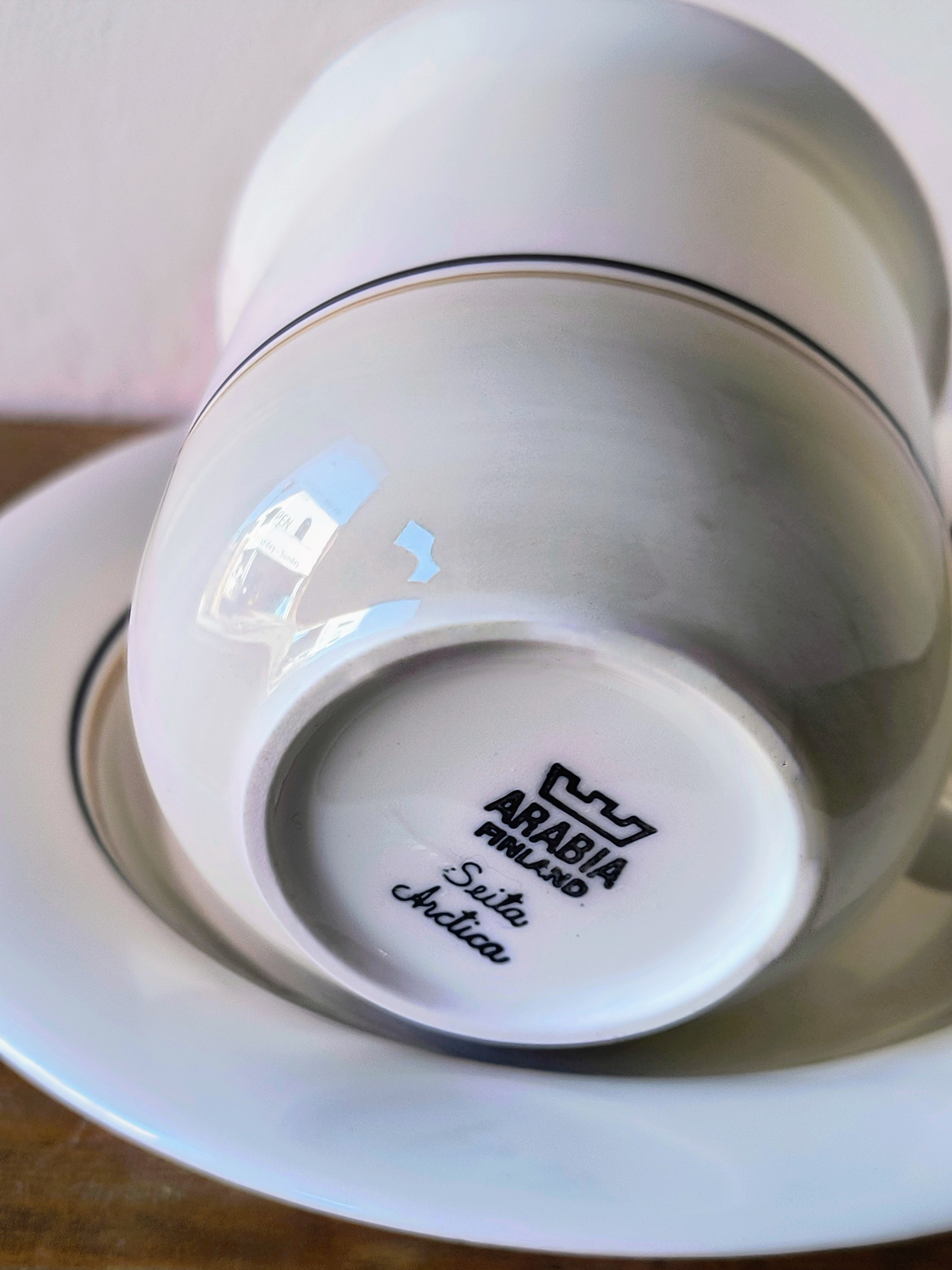 フィンランドのアラビア(ARABIA)社を代表するデザイナー、インケリ・レイヴォ(Inkeri Leivo)がフォルムと装飾を手がけた「Seita Arctica(セイタ・アークティカ)」シリーズのコーヒーカップ&ソーサーです。