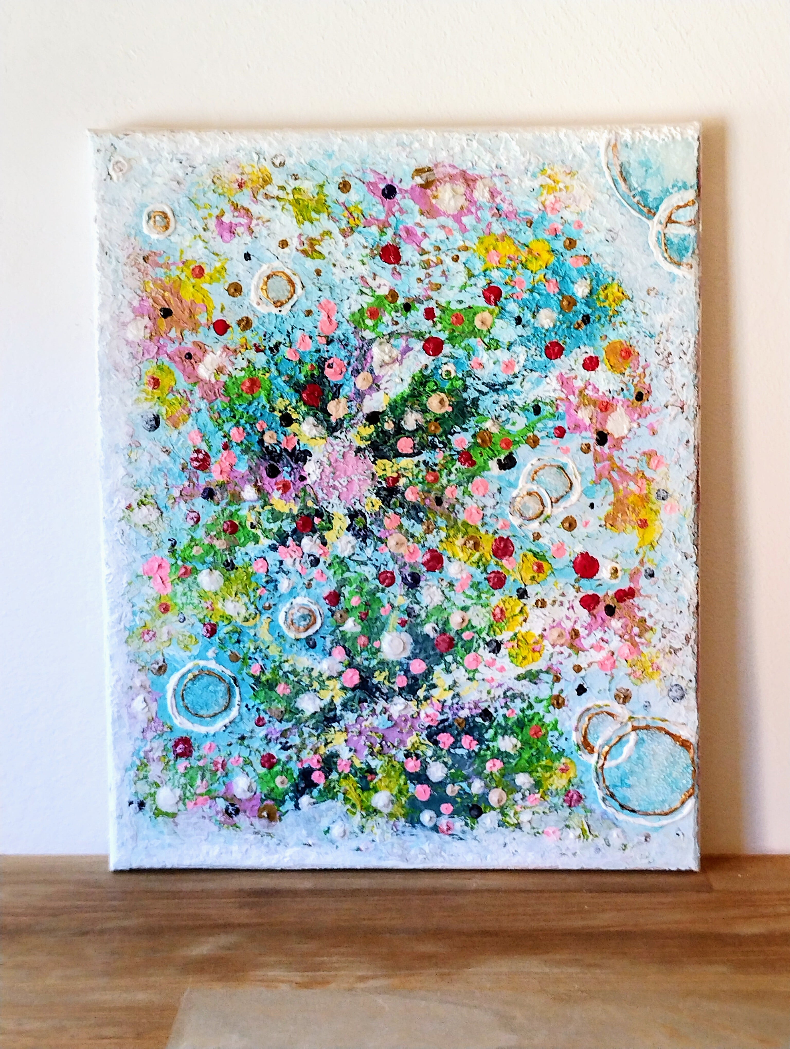 この作品は、様々な色の絵の具がPOPに描かれており、明るい気持ちになる作品です。